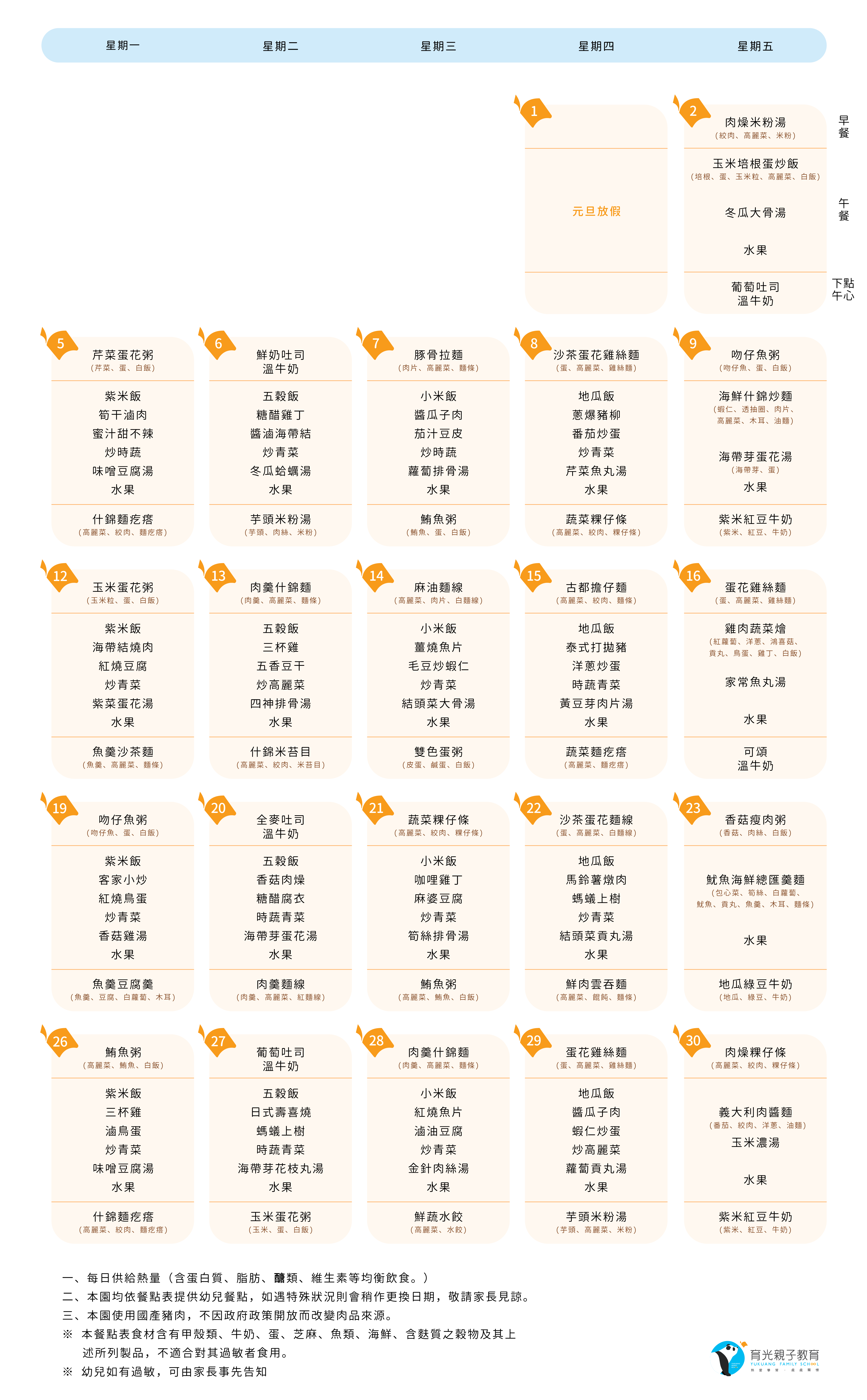 一月菜單